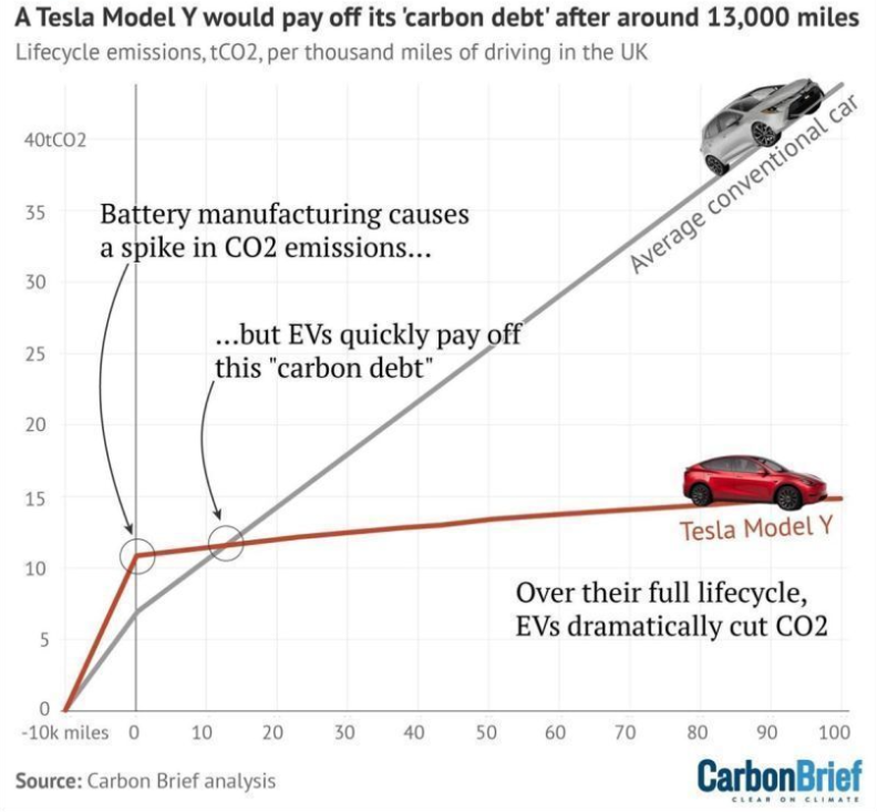 el ahorro de emisiones compensa la huella de fabricación". Esto suele ocurrir alrededor