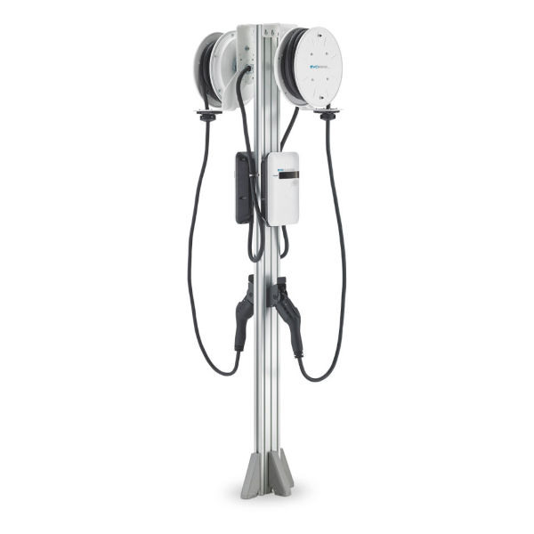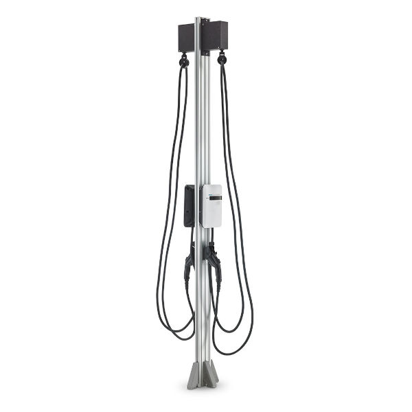 - Agregue un dispositivo retractor para control y apoyo del cable de carga. El EvoReel enrollará y guardará el cable de forma automática para mantenerlo alejado del suelo evitando daño al cable, sin estorbar.